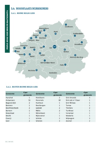 5.6. WOONPLAATS WERKNEMERS 5.6.1. RUIME REGIO LIER 5 2 4 18 26 3 41 6 65 6 8 205 1 17 26 4 33 18 15 45 7 3 11 36 5.6.2. BUITEN RUIME REGIO LIER 30 | MIVAS